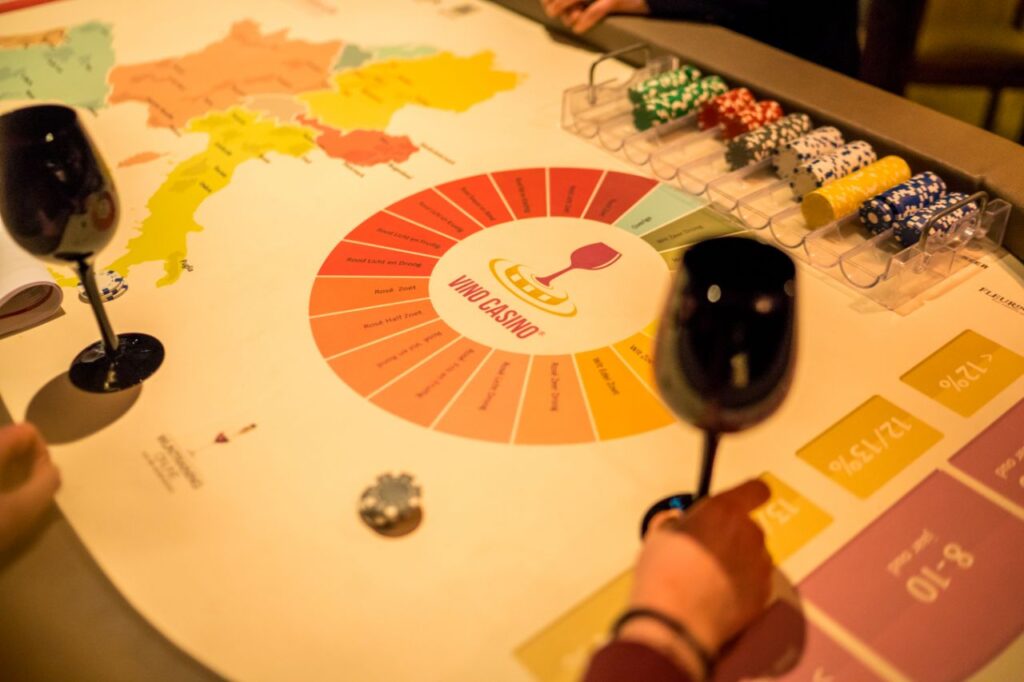 Are you looking for an original and impactful concept for your next event or corporate party? Then the Vino Casino table created for ORB wines in the Netherlands by Wine Promotions is exactly what you’re looking for! This innovative concept combines the excitement of a casino game with the elegance of wine tastings, ensuring that your guests will have an unforgettable experience.